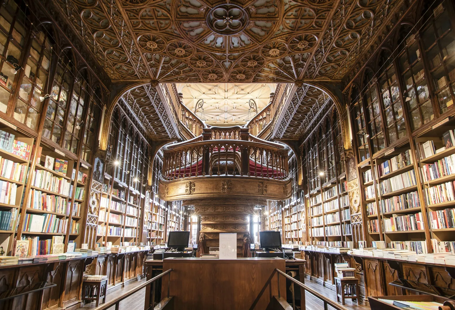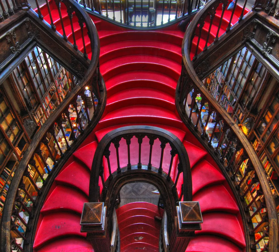 Souvent citée comme l’une des plus belles librairies du monde, elle est célèbre pour son escalier rouge flamboyant et ses boiseries. Elle aurait inspiré J.K. Rowling lors de son séjour à Porto.